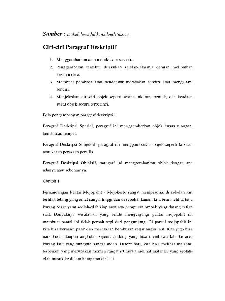 | Jadikan7 Contoh Paragraf Deskripsi Spasial Subjektif Objektif Pengertian Update Gambar Dp Wa |